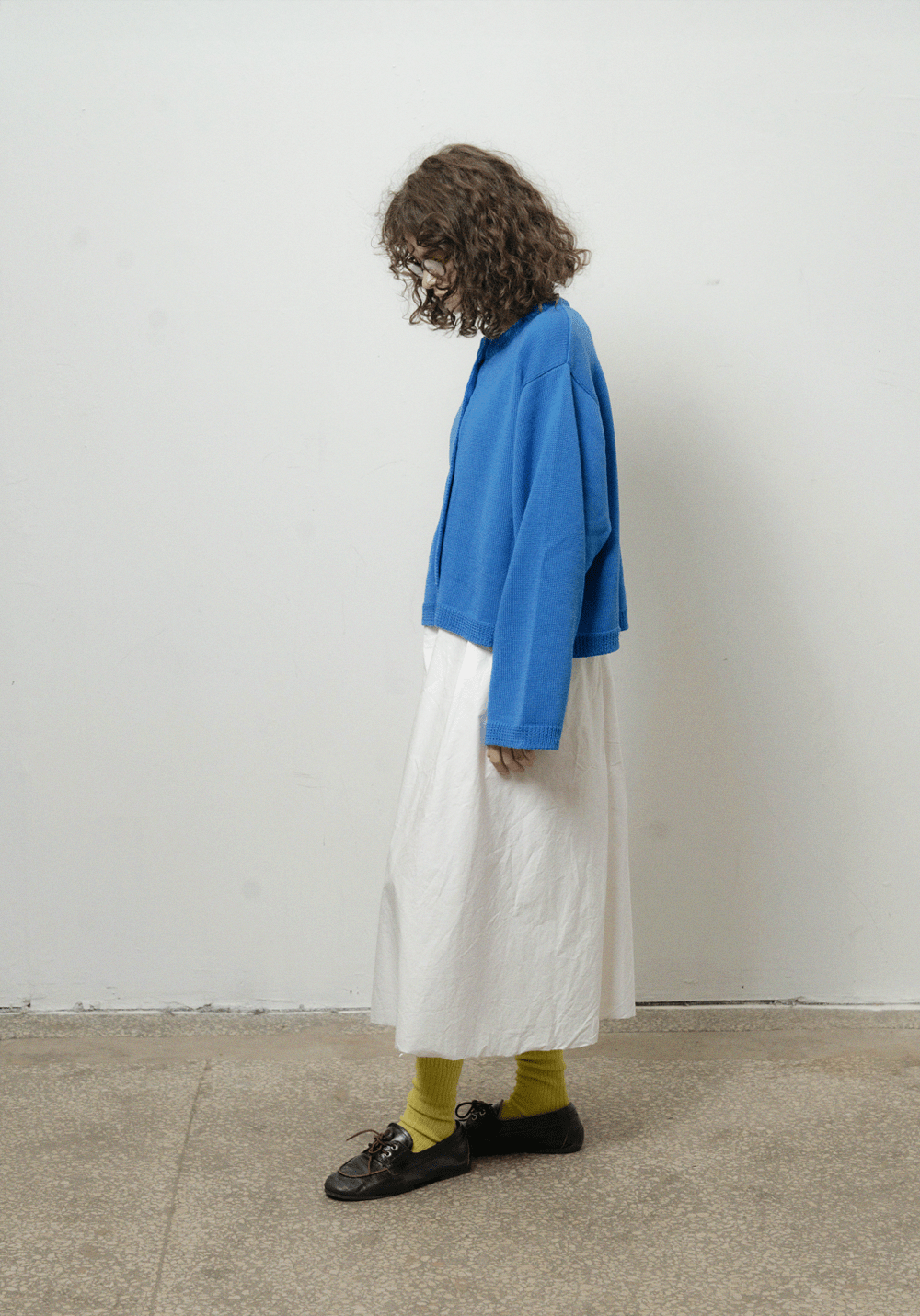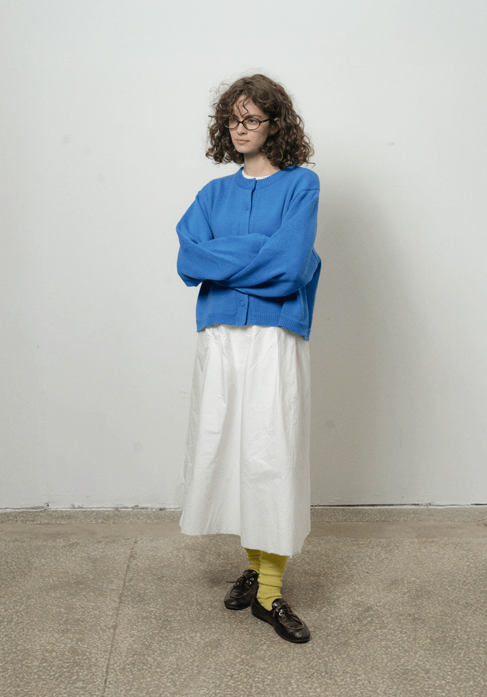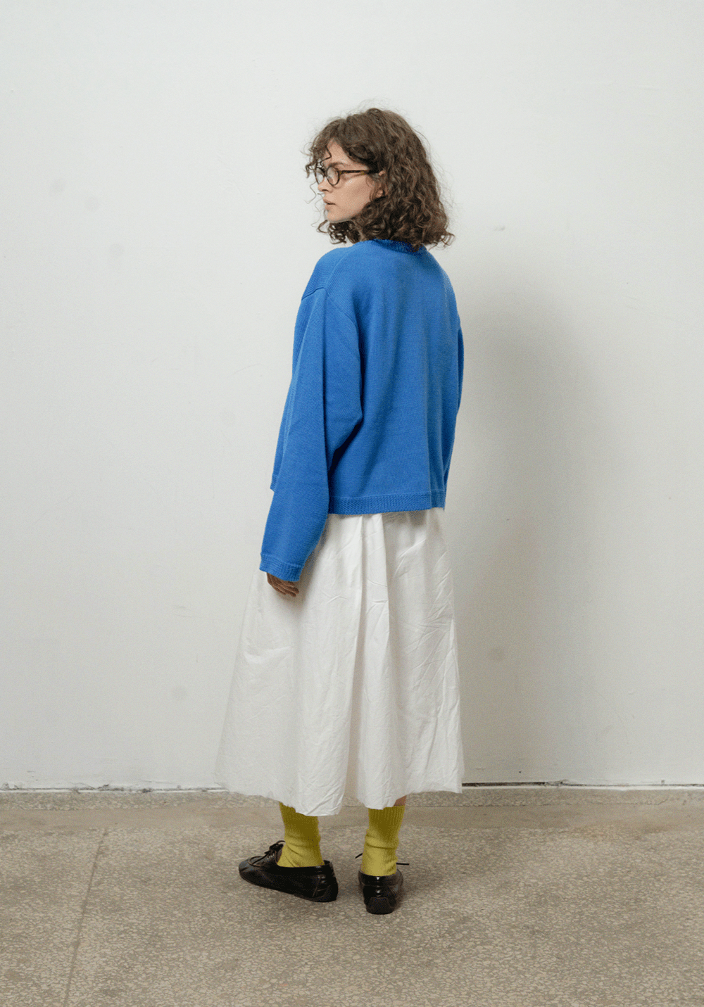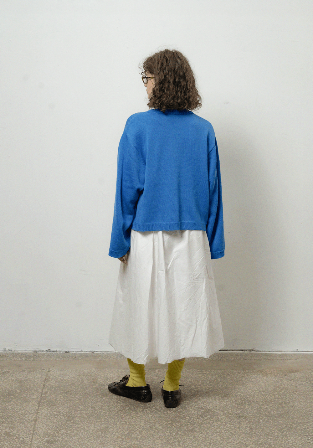 Оверсайз кардиган яскраво синього кольору з круглою горловиною. Виконаний з 100% вовни мериноса, має спущену лінію плеча та широкі рукави. Застібається на ґудзики спереду. Представлений у розмірі one-size.